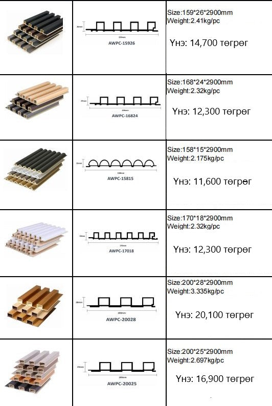 Хана, тааз болон бусад бүх зориулалтаар ашиглаж болох гоёлын рейк, хавтангууд